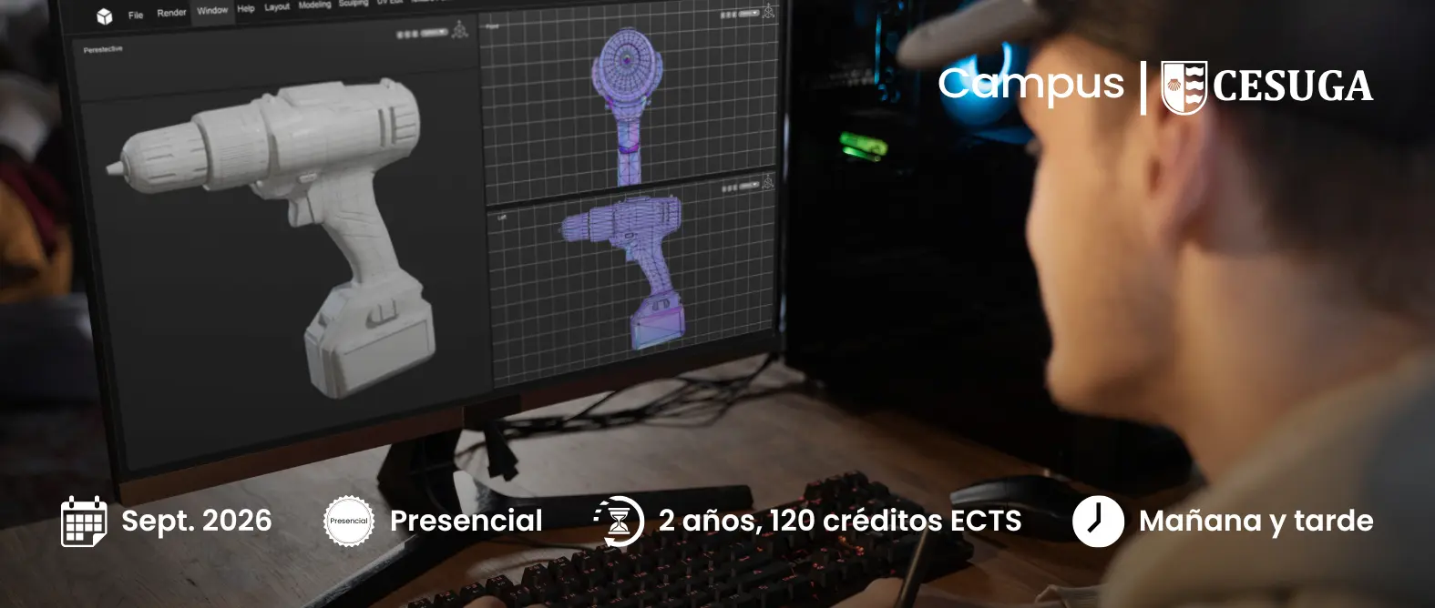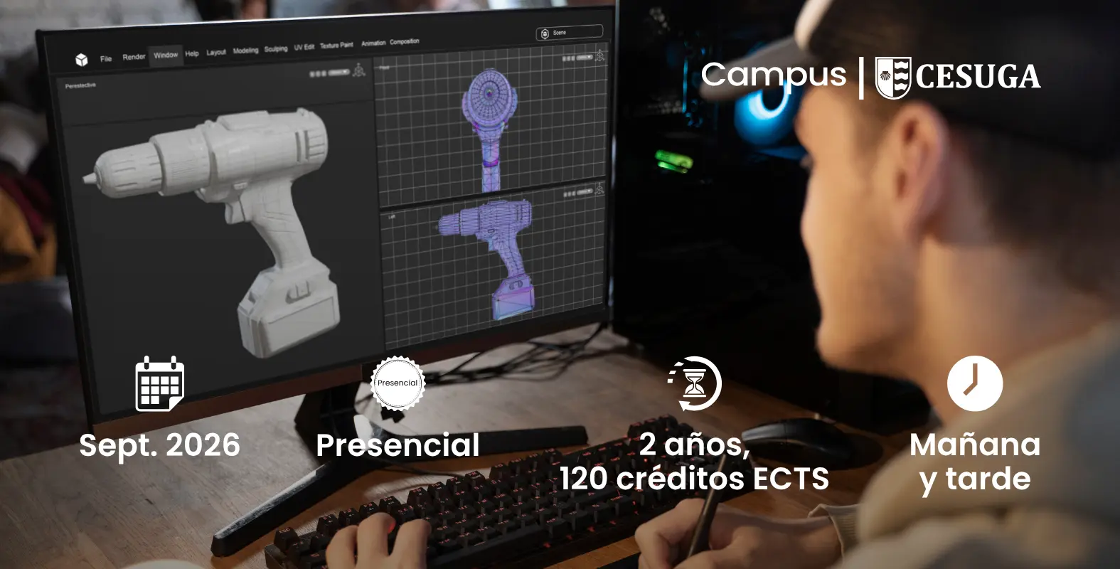 El Ciclo Superior en Animaciones 3D, Juegos y Entornos Interactivos, impartido en el campus Cesuga (A Coruña), es un grado superior oficial autorizado por la Xunta de Galicia. A través de una formación práctica y orientada al entorno profesional, aprenderás a diseñar, modelar y animar personajes y escenarios en 2D y 3D, crear videojuegos y desarrollar proyectos interactivos con herramientas de última generación. Además, realizarás prácticas en empresas del sector para adquirir experiencia real desde el primer curso.